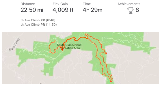 I barely beat the five-hour cutoff time to the next aid station at mile 18, as my calf and shin muscles continued to spasm and lock, bringing me several times to a sudden grimacing stop. Pickle juice and Gatorade at the aid station momentarily helped, but by mile 20, I knew I was done. Abandoning the race, I hiked straight up, back through the steps of Stone Door to a ranger's truck, and hitched an ignominious ride back to the start.